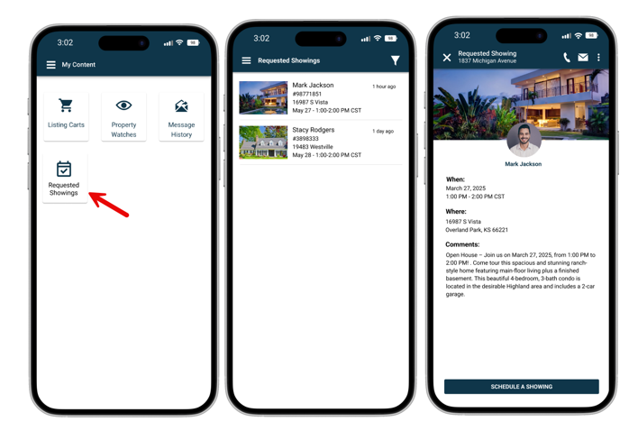 Previously, when a buyer clicked “Request a Showing,” an email was sent to their agent, but there was no central location for users to track upcoming requests.