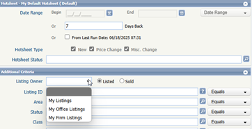 The Hotsheet search form in both Paragon Pro and Paragon Connect now includes a Listing Ownership filter. You can choose to view only your own listings, your office’s listings, or all listings.