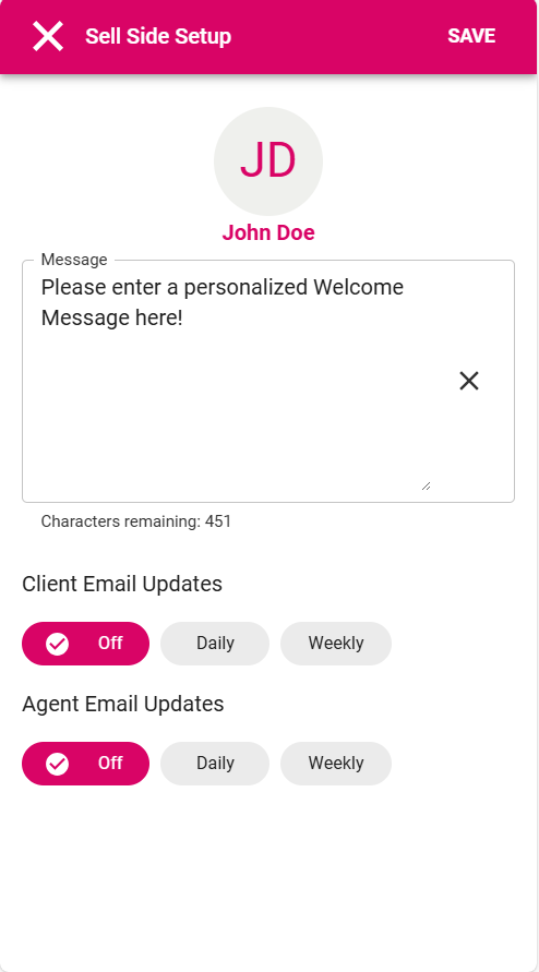 6. Click Save to complete the Sell Side Setup and begin sending notifications.