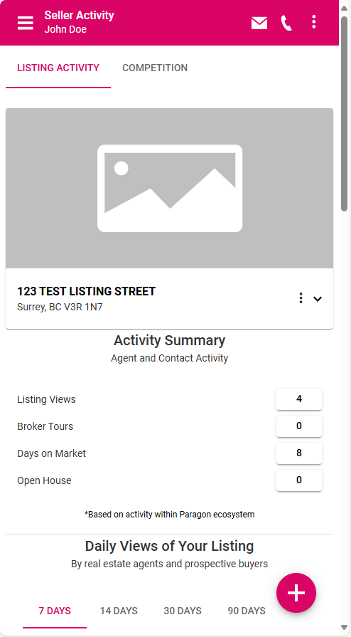 • Activity Summary: Listing views, broker tours, DOM (Days on Market), and open houses,